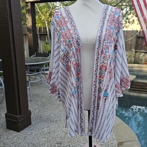 Nwot Savanna Jane Multicol Boho Aztec Floral Embroidered Open Front Kimono 1x/2x