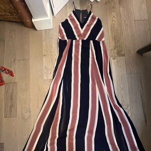NWOT Striped (Navy, White, Pink) Drop Waist V-Neck Express Maxi Dress, Medium