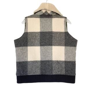 Nwot WOOLRICH Vest Jacket L Wool Plaid Grey Shawl-Neck SherpaCollar Quilted Snap