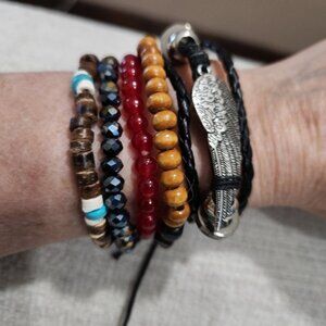 B73 Enhance your style with this multicolor beaded bracelet set. Featuring a mix of black, red, brown,