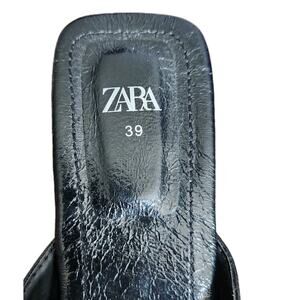 Nwot Zara Women's Black Patent Square Toe Block Heel Thong Sandals Size 39