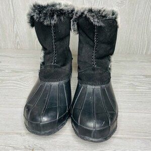 Nwot bearpaw Deborah Black/Grey rain boots with fur trim size 11