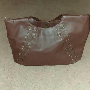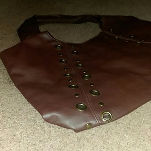 Brand new brown purse with 3 pockets inside! Neat detail on front! Very small imperfections shown in the last photo! This is a great bag to have due to it's size and storage! It also goes great with any outfit or boots!