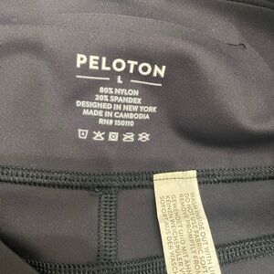 Sleek black leggings with Peloton logo. Ideal for workouts and casual wear. Size large Peloton standard move high-rise black leggings two available. No tears of stains no rips for smoke free home.