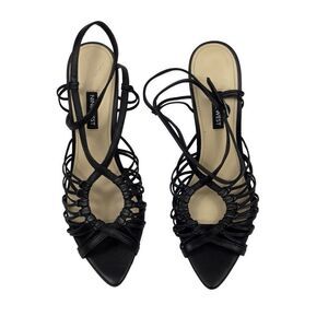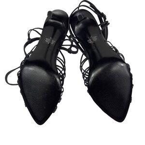 Nwot y2k Nine West black leather lace stappy heels sz 9