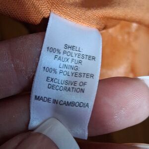 Stay warm and stylish with this cozy orange faux fur jacket. Perfect for chilly days, this jacket adds a pop of color to any outfit.