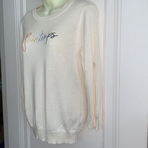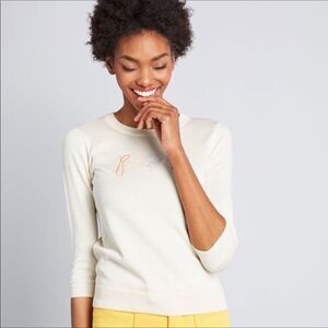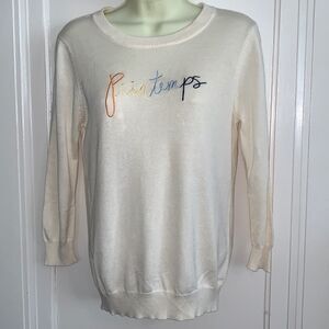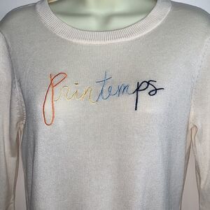 Nwot ModCloth cream colored cotton/modal sweater with “Printemps” embroidered on front