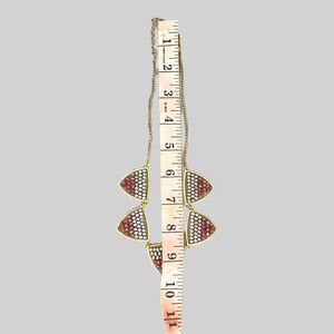 Pictures don’t do this necklace justice. Six rows of silver and magenta rhinestone like beads adorn each triangle chain link that makeup this statement necklace. Measurements in second photo. New without tags.