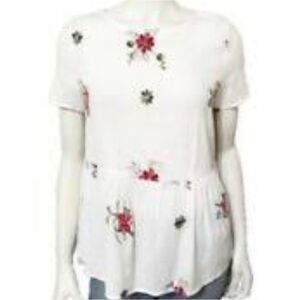 Shein large top with embroidered flowers, peplum, short sleeve, pearl button detail on back, condition = new with out tag!