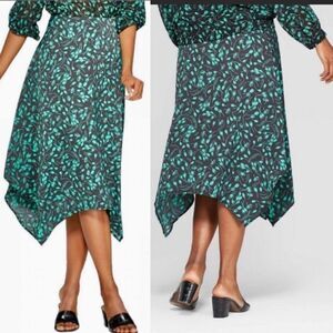 NWOT Who What Wear black & kelly green thin polyester asymmetrical skirt