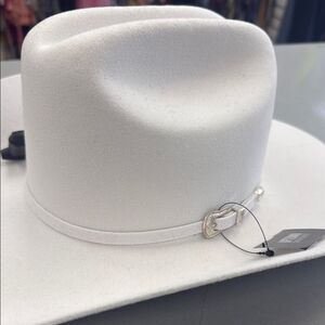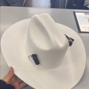 Stylish white cowboy hat with a sleek design. Perfect for any occasion.