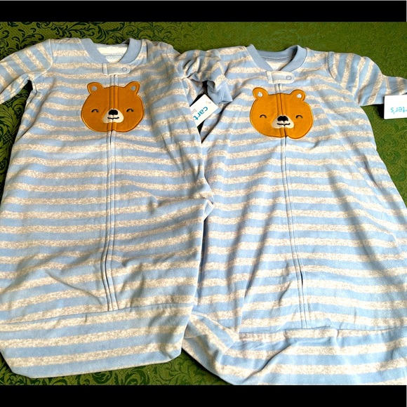 Nwt 6-9 m twins carters teddy bear sleep sack gown boy fleece bathing layette 6m