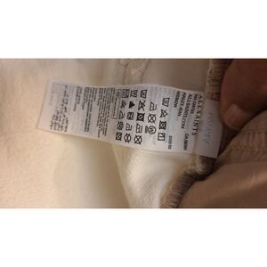 New with tags ALLSAINTS Hailey frayed hem white high rise cropped straight leg denim jeans women size 4, button closure, five pocket, elastic waist, frayed hems. Rise 13, Inseam 25, Waist 13, Length 37.
