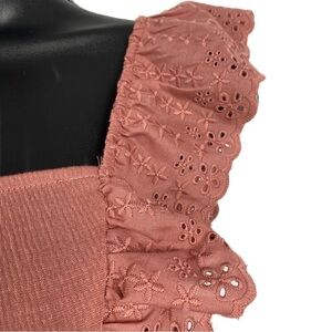 Style: Sleeveless midi dress with embroidered ruffled shoulder straps.