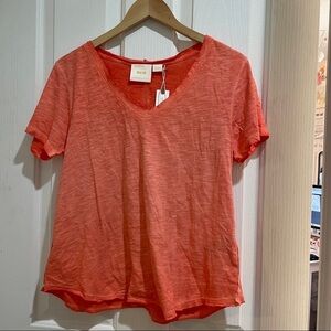 Nwt Anthropologie Maeve Arista Washed Tee Summer Top Orange Coral Cotton v-neck