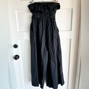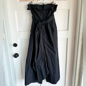 Nwt Anthropologie Maeve Strapless Buttondown Belted Wide-Leg Jumpsuit Black