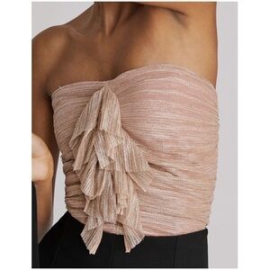 Nwt Anthropologie Ruffled Metallic Tube Top Pink champagne XL Summer Party Maeve
