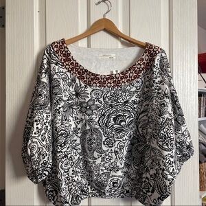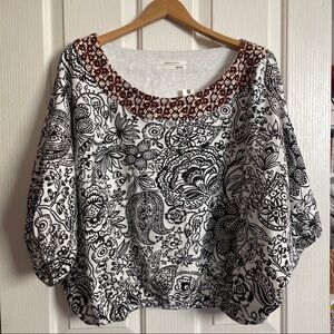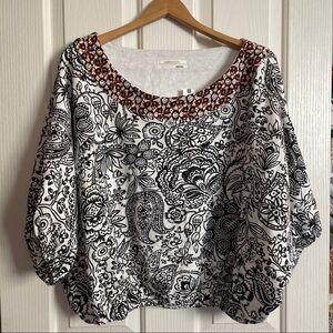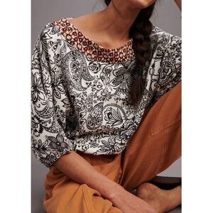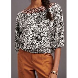 Nwt Anthropologie Samia Top Blouse Women’s tee boho Cotton Black White new