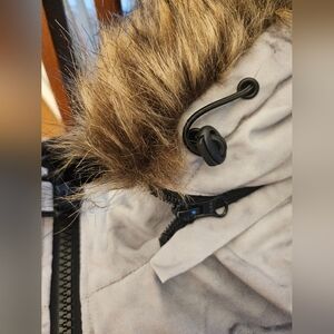 this coat is windproof and super warm, a very quality brand that is well made. 2 way zipper. inside waist cinch. interior zip pocket