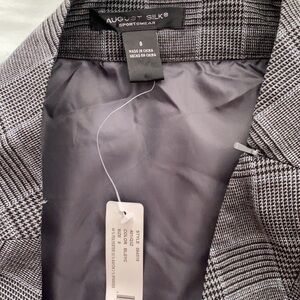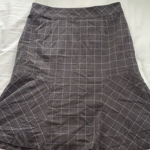 Black and gray plaid flattering skirt. Flare midway down. Inside lining. Side zipper. NWT size 8. Approx length 23” x 16” waist
