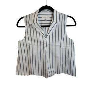 Brand new with tags. Stunning white sleeveless cotton poplin blouse with black and blue stripes. This is 100% cotton and a boxy fit. So cute and trendy. Womens size xs.