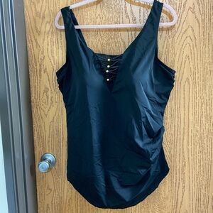 Nwt Bead Lattice Sarong Front Swimsuits For All One Piece Plus Size 16 Black