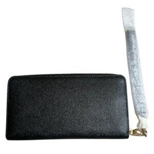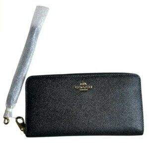 retails$298 Nwt COACH black Long Zip Around Wallet w/ detachable wrist strap & Gold Tone Hardware All still has packaging inside & outside