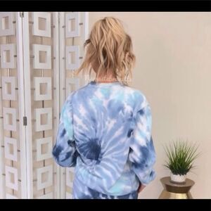 NWT Boho Sea Blue & Navy Spiral Tie Dye Long Sleeve Pullover Sweatshirt