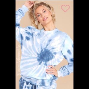 NWT Boho Sea Blue & Navy Spiral Tie Dye Long Sleeve Pullover Sweatshirt