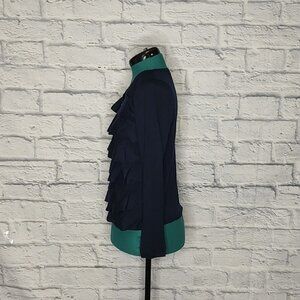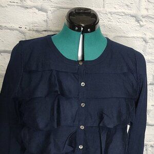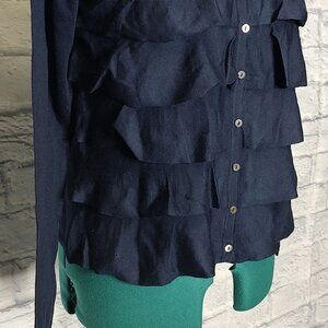 Nwt Boo Gemes women's navy blue wool tiered ruffle cardigan Sz M