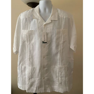 Nwt CUBAVERA Mens 2XL Short Sleeve 4 Pocket 100% Linen White Guayavera Shirt