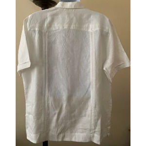 Newt CUBAVERA Men's 2XL Short Sleeve 4 Pocket 100% Linen White Guayabera Shirt. *Brand New with Tags *Bring on the heat in this classic guayabera. The 100% linen material is breathable and lightweight with a laid-back untucked design. A relaxed camp collar, pintuck detailing and four buttoned pockets complete your look. Pair it with Cubavera shorts or linen pants for a cool and comfortable outfit. Composed of a breathable 100% linen fabric, Camp collar on this guayabera is wider and creates a lower cut v-neck than a traditional point collar shirt. Length 32'',Armpit to Armpit 27.8'', Sleeve 11''. *Ships from a smoke & pet free home