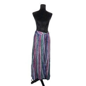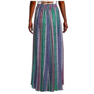 The NWT Caroline Constas Hera Multi Snake Print Silk Blend Cover Up Skirt in size Small is a stylish and versatile piece that can be worn for various occasions such as travel, parties, or casual outings. Made from a luxurious silk/cotton blend, this maxi skirt features a high slit and an elastic waistband for a comfortable fit. The semi-sheer fabric adds a touch of elegance, while the animal print pattern gives it a trendy edge. Perfect for the summer and spring seasons, this designer skirt is a must-have for those who love beach and resortwear.