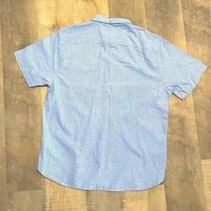 Men’s collared shirt sleeve casual or dress shirt. NWT. blue with navy and denim blue colored dots. Perfect to pair with jeans, khaki’s, shorts and even blazer.