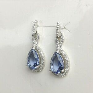 Nwt Ceylon Blue Sapphire CZ halo drop earrings in Sterling Silver