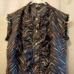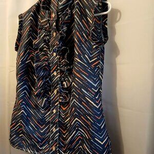 Nwt Chevron Print Ruffle front Sleeveless Tank Top Blouse S Navy Blue Multi Mock