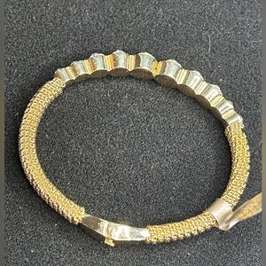 Chico's Gold Tone Oval Mirabelle Mesh 6.25” Clamper Bangle Bracelet NEW