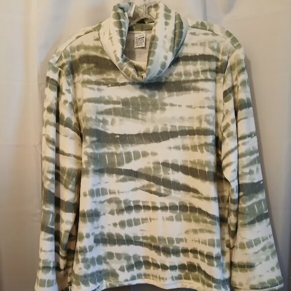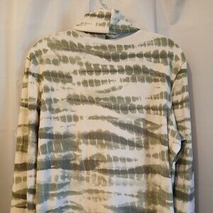 Nwt Cowl Neck Tie Dye T-shirt PL Army green white Long Sleeve Soft TerryKnit Top
