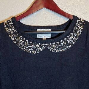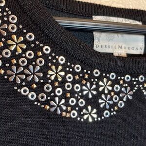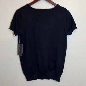 Nwt Debbie Morgan Black Short Sleeve Collar Embellishment Sweater Size Medium