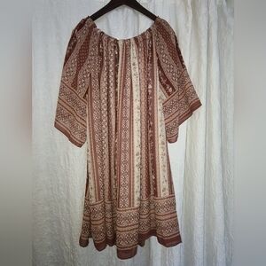 Boho midi dress has exaggerated balloon sleeves, string belt, and the elasticated neckline can be worn on and off the shoulders.