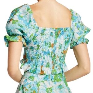 Style: Cropped top with smocked bodice, puff sleeves, tie-front detail and beautiful floral print.