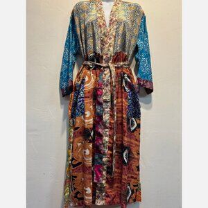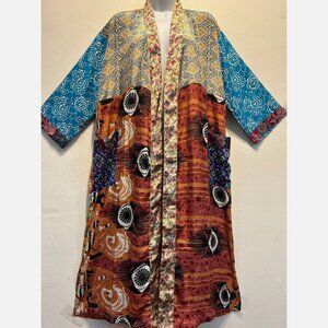 Nwt FUNKY STUFF boho patch belted vintage silk TOP DUSTER CARDIGAN 1X