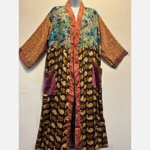 Nwt FUNKY STUFF boho patch belted vintage silk TOP DUSTER CARDIGAN 1X