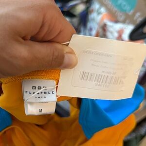 Brand new with tags. Gorgeous blue and orange colorblock one piece swimsuit with tie dront. So fun and colorful, great for summer, the beach and vacation! WOMENS size medium. Does not have pads. Has adjustable straps.