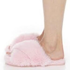 Nwt Flora by Flora Nikrooz cross band faux fur fluffy slippers in multiple sizes