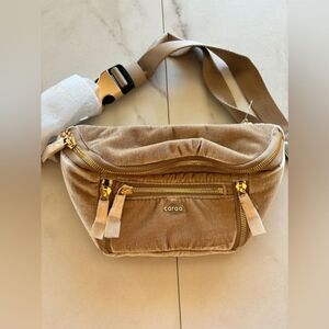 Nwt Free People + Caraa Velvet Sling Fanny Pack bag in Fawn (Tan)