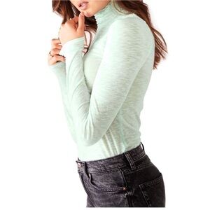Nwt Free People Caroline Smocked Turtleneck Top Soft Girl Iced Aqua XS