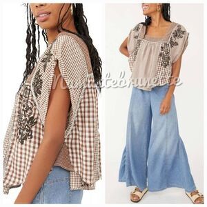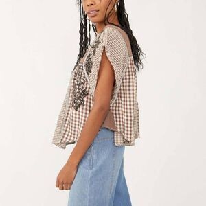 Free People brings boho charm into your closet with the Half Moon top, featuring gingham prints and pretty embroidery.