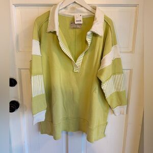 Nwt Free People We The Free Clean Prep Polo Pullover Striped Sunny Lime Yellow