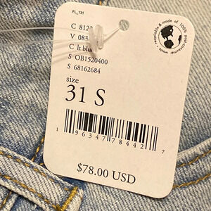 Nwt Free people, high-rise cropped straight jeans, curvy fit size 31 short